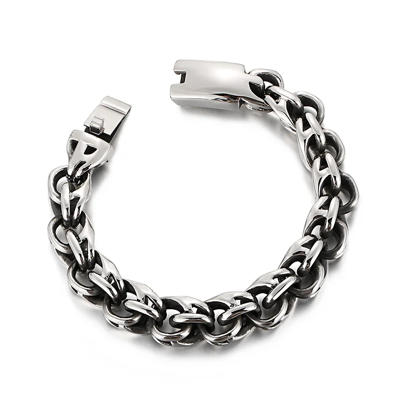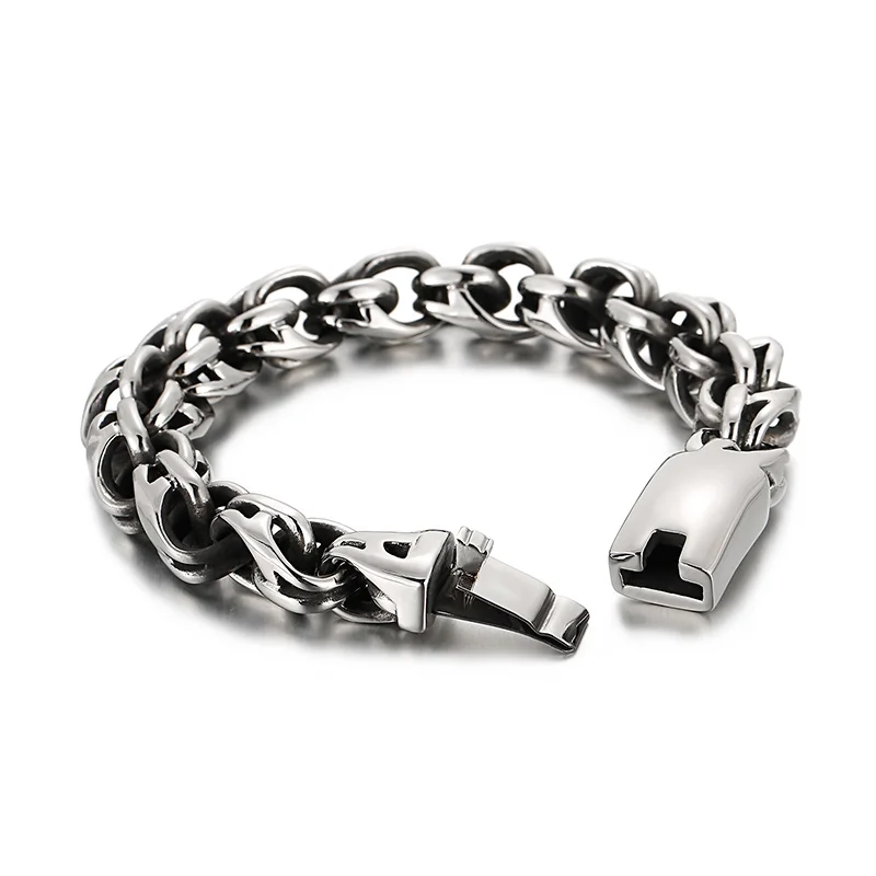 Men’s Twisted Link Bracelet – 9" Stainless Steel Biker Style